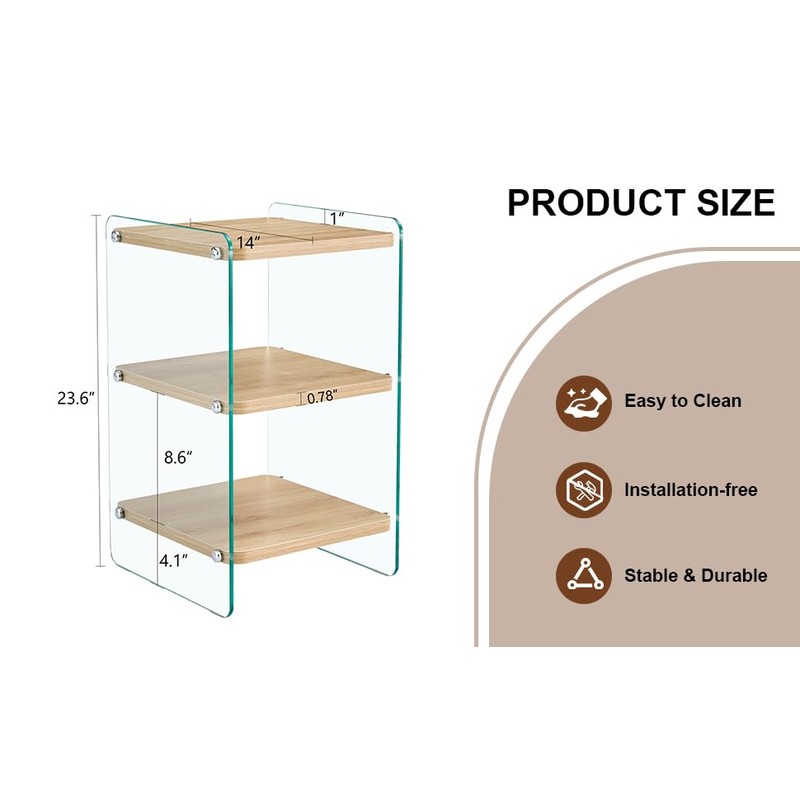 This bedside table boasts a remarkable triple layer rectangular design, offering three spacious surfaces measuring 14 inches by 14 inches each. Its ample space provides an solution for displaying personal items, lamp shades, or decorative knick-knacks, enhancing both function and style in any room.