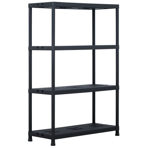 TREATLIFE HOME Storage Shelf Rack Plastic with 4 Tiers and Wall Attachment, Load Capacity 485 lb, Compact Design, Black