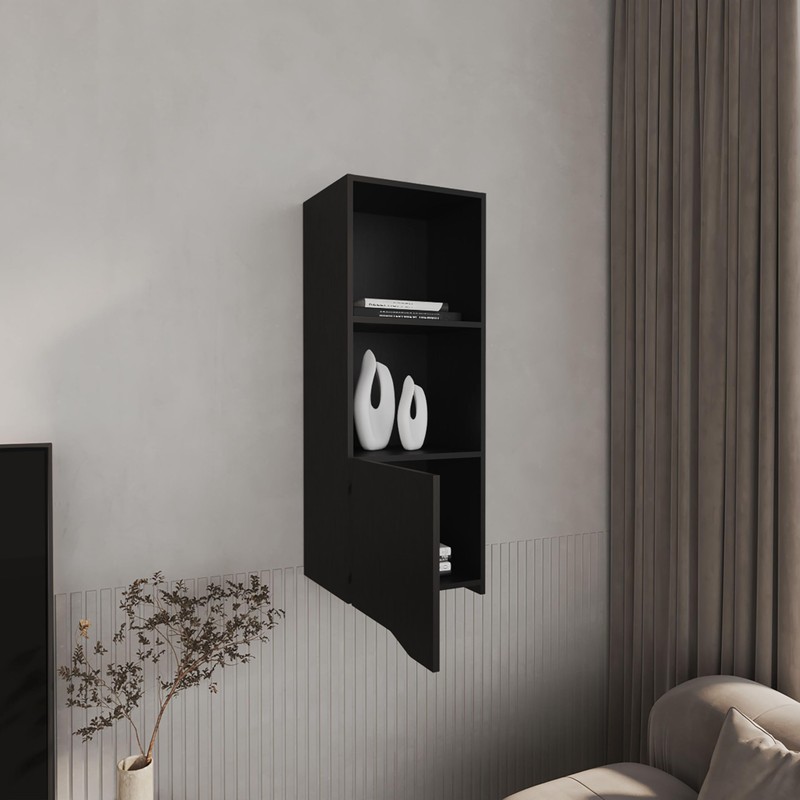 TREATLIFE HOME Wall Cabinet for Stylish Organization, Space-Saving Design with 3 Shelves, for Home Decor and Essentials, Black