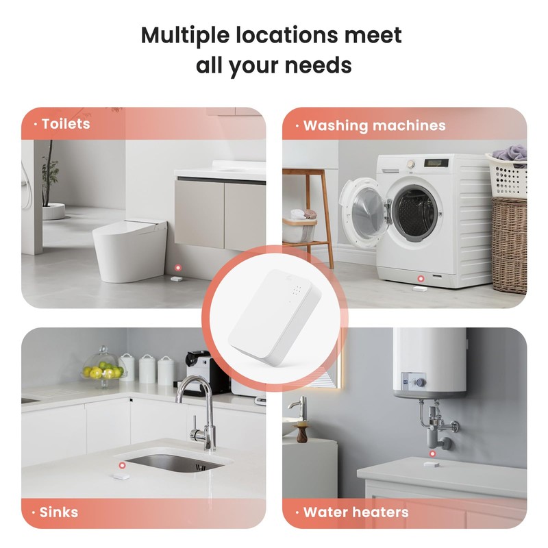 Easy installation with no hubs or wires needed. WiFi Flood Detector is compatible with 2.4GHz WiFi, not 5GHz.It provides 24/7 leak detection and sends notifications to your phone. You can share access with family members. The detector emits a loud sound upon detection and Compatible with Alexa or Google Assistant. Receive battery replacement reminders through the app. Includes 2 AAA batteries for up to two years of use. Enhances home automation and works seamlessly with other smart products to protect your home from water damage and enjoy energy savings.