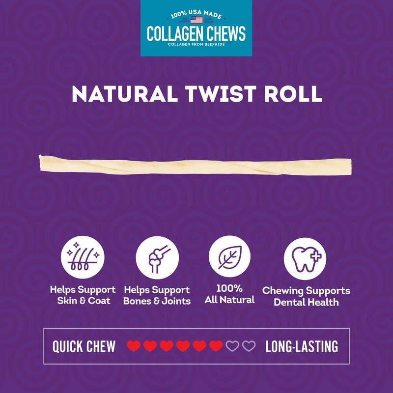 Treatly USA Collagen Twist Rolls 12-13" Dog Chew Treats - Natural Flavor, 4 Count/1 Pack