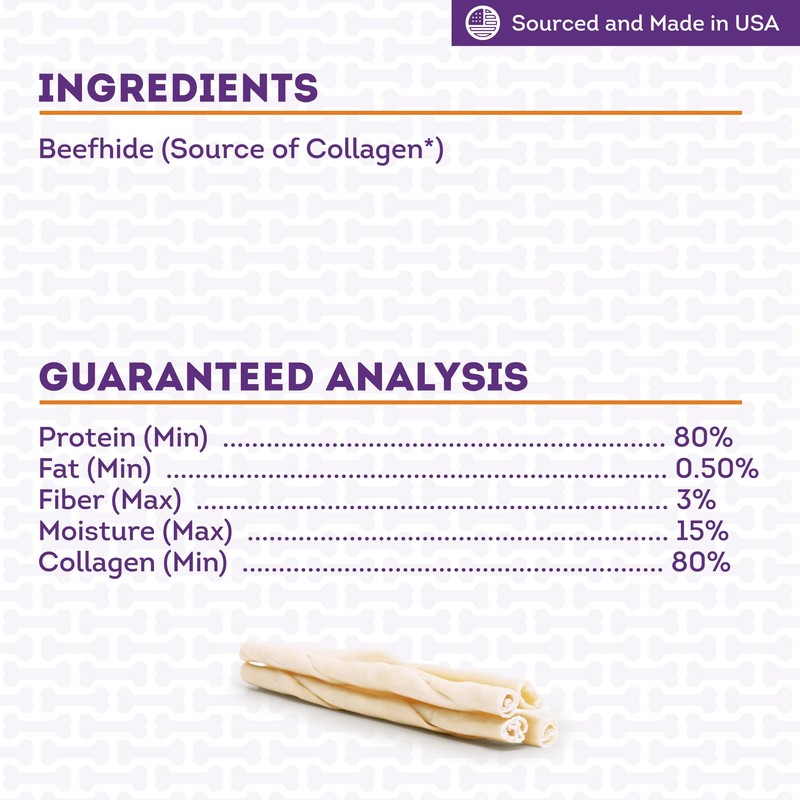 - PRODUCT DETAILS: Twist Rolls, Natural Flavor; 12-13" 4 Count - For Extra Large dog breeds, but we highly recommend choosing a dog treat longer than the length of your dog's muzzle