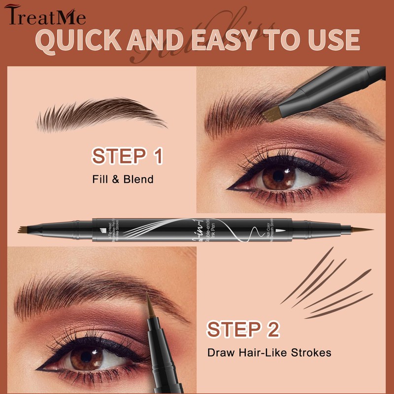 TreatMe Microblading Eyebrow Pencil - Waterproof 2-in-1 Dual-Ended Eye Brow Pen with 4-Fork-Tip Brow Pen and Precise Brush Create Natural Looking Defined Eyebrows Last All Day
