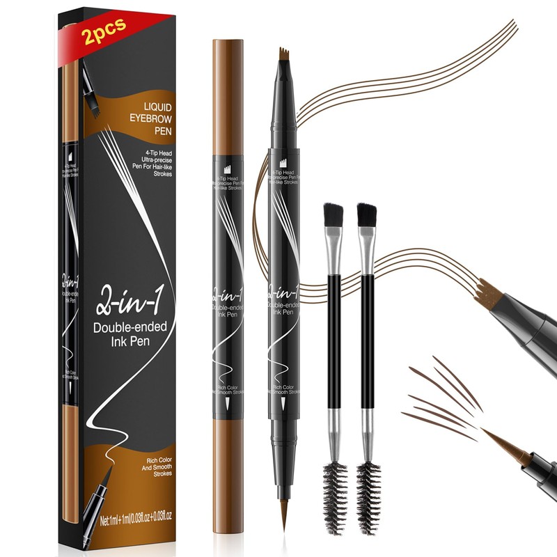 - 2-IN-1Dual-Head design: Microblading eyebrow pen one end for precise hair-like strokes, other end with a four-prong micro-spatula tip for filling in brow gaps and blending color seamlessly