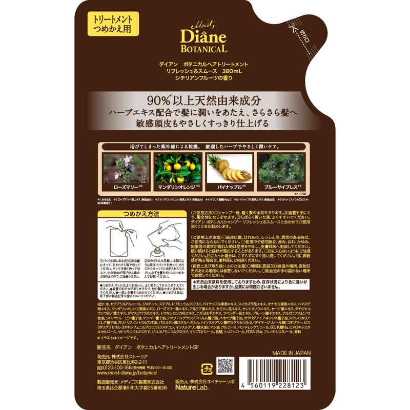Treatment Sicilian Fruit Scent, 12.8 fl oz (380 ml), Gentle Moisturizing, Diane Botanical, Refresh & Smooth Refill