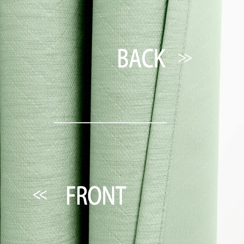 - Mint Green Curtain Panels: Our Premium linen texture blackout window curtain panels are 104" per pair, 52”x 95“/Panel. Our high density blackout fabric weighs 300gsm, which drapes very well.