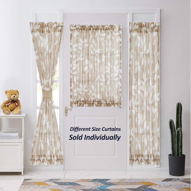 - LEAF PRINT SIDELIGHT DOOR CURTAINS: These semi sheer door curtains are aesthetically designed and feature a flowing white leaf pattern print on linen textured background. They will certainly create a tropical ambiance and liven up your home décor with elegance and class. Perfect for front back french doors, glass doors