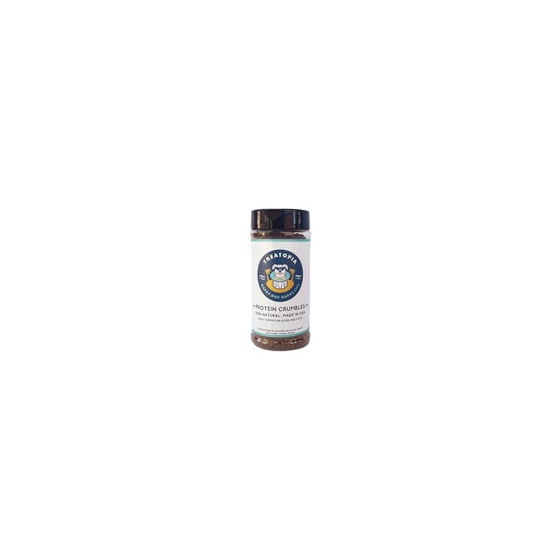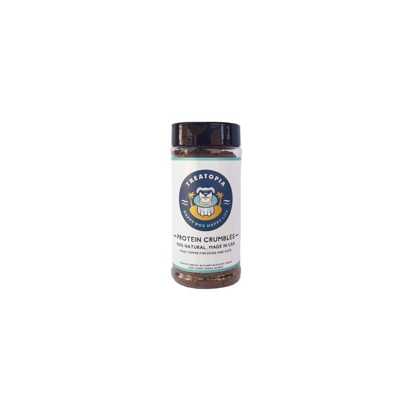 - Protein: Treatopia Protein Crumbles can be enjoyed as a meal enhancement for every day meals, added protein to homemade dog treats, and can even be added to water to encourage healthy water intake.