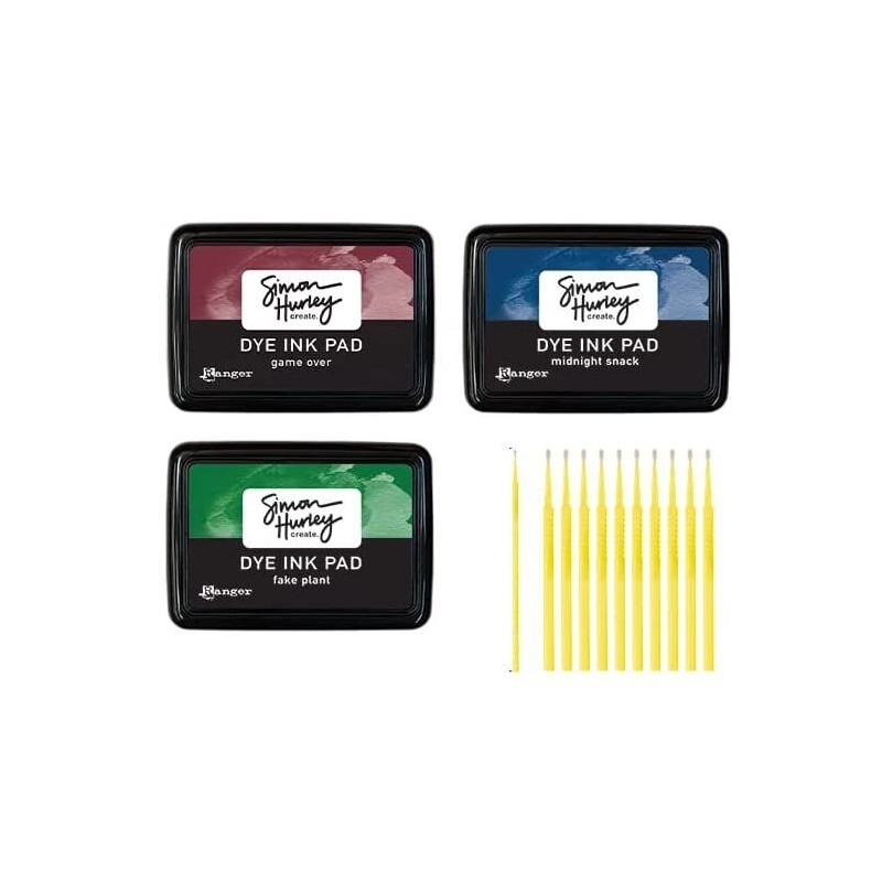 Ranger and Simon Hurley are pleased to introduce a new color palette of dye ink pads for the Simon Hurley create. brand. This assortment of 3 colors is perfect for creating blended backgrounds, stamping, and stenciling. Simon Hurley create. Dye Ink Pads measure 2.75x 3.75