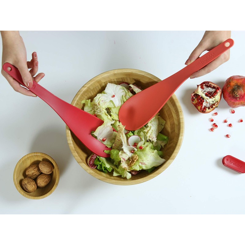 Trebonn - Twins Salad Server, Salad Server Set Consisting of Spoon and Fork, Separate for Stirring, Together with Tongs for Serving and Compact in Drawer 1520210 Coral