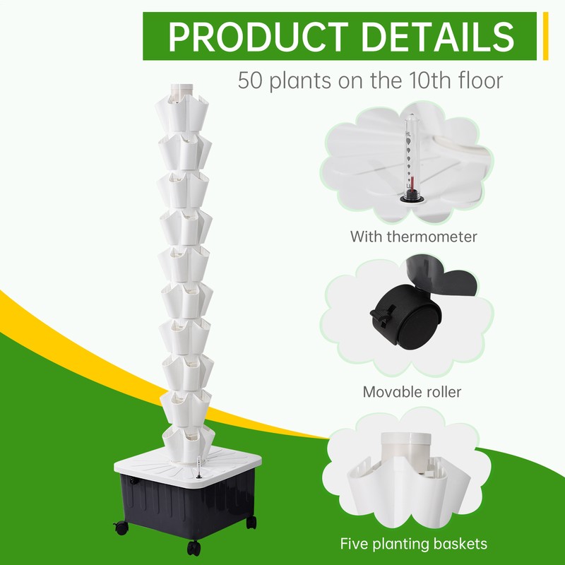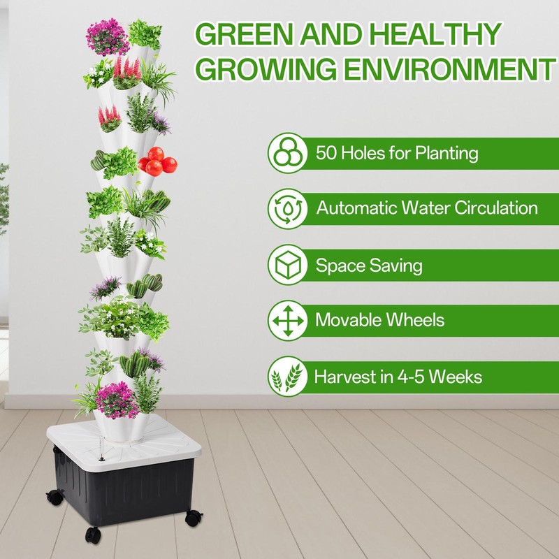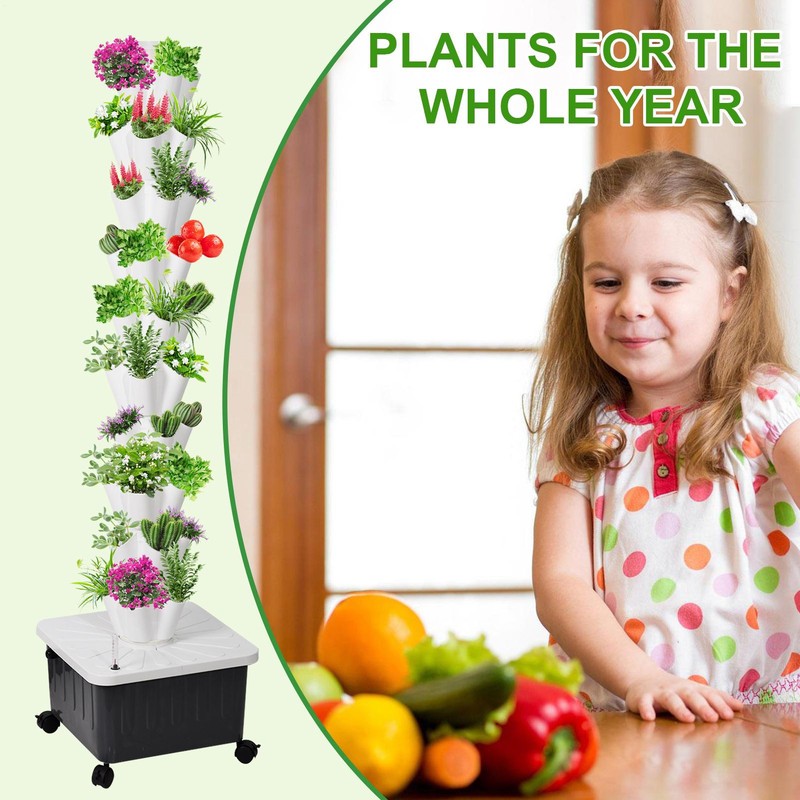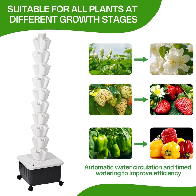 Versatile and Spacious Hydroponics Tower: Enjoy growing your own seasonal vegetables, fruits, and even different varieties of edible flowers with five planting baskets per layer that cater to various plant heights