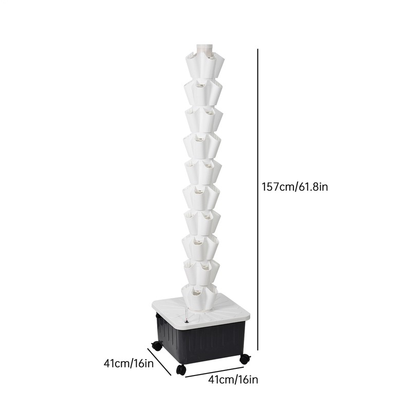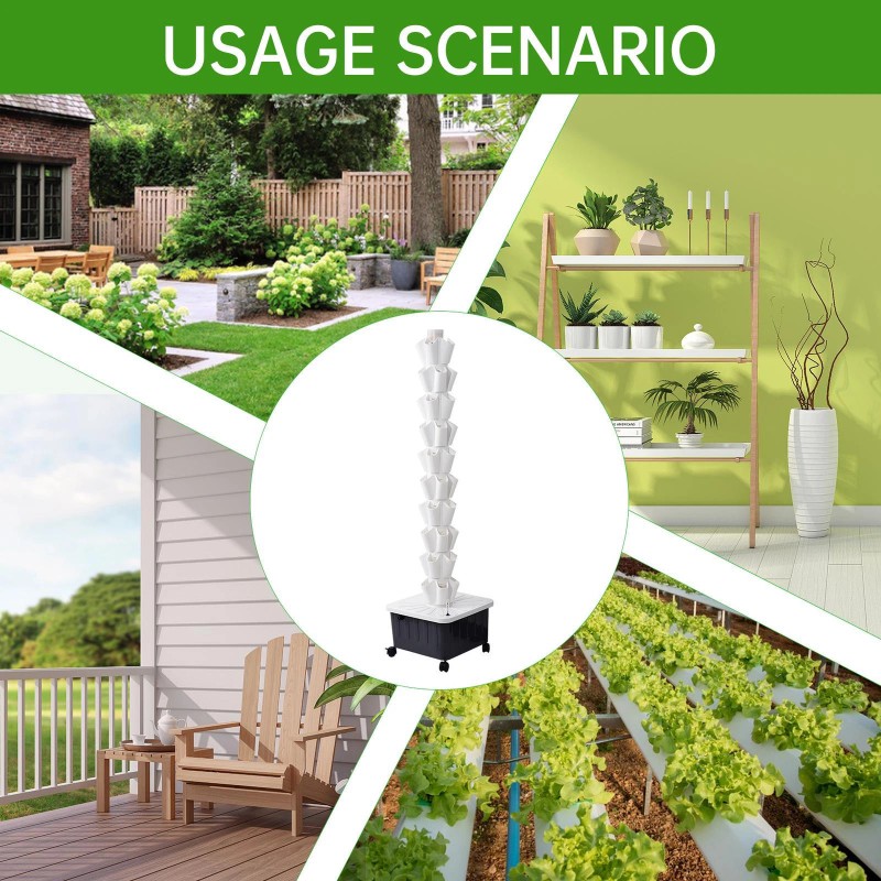Water Conservation Solution: With an innovative hydroponics system, this tower minimizes water wastage by using an automatic water circulation and timed watering from top to bottom. It improves efficiency and practicality, making it an eco-friendly alternative to traditional soil planting
