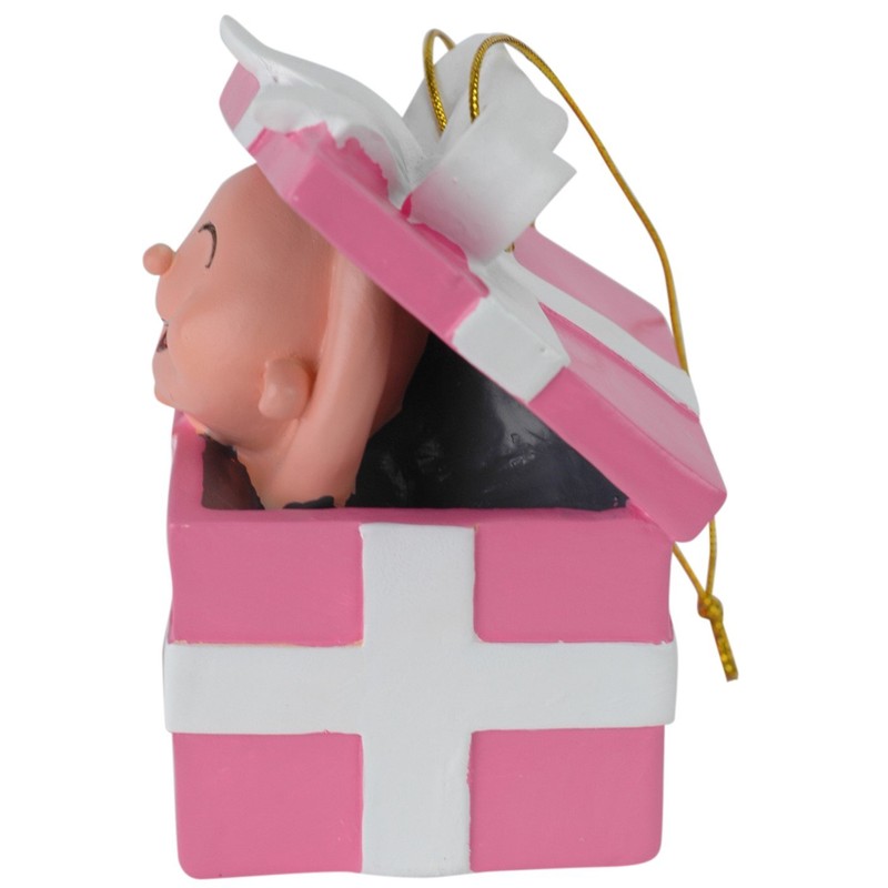 - THEME: This is a great way to celebrate the birth of a newborn child come this Christmas! There's a Baby Blue and a pink ornament available. The ornament shows the Baby peeking out of a Christmas present.