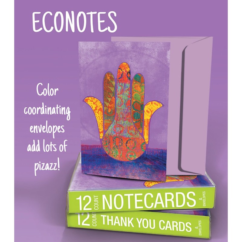 - 12 boxed stationery notecards (4 x 6 inches) with matching color-coordinated envelopes; Blank inside