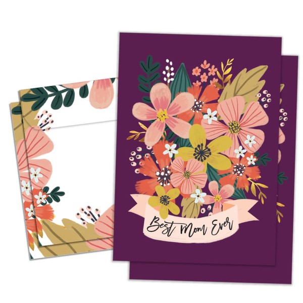 Tree-Free Greetings Mother's Day Cards - Artful Designs - 2 Cards + Matching Envelopes - Made in USA - 100% Recycled Paper - 5"x7" - Best Mom Ever Flowers (GT60450)
