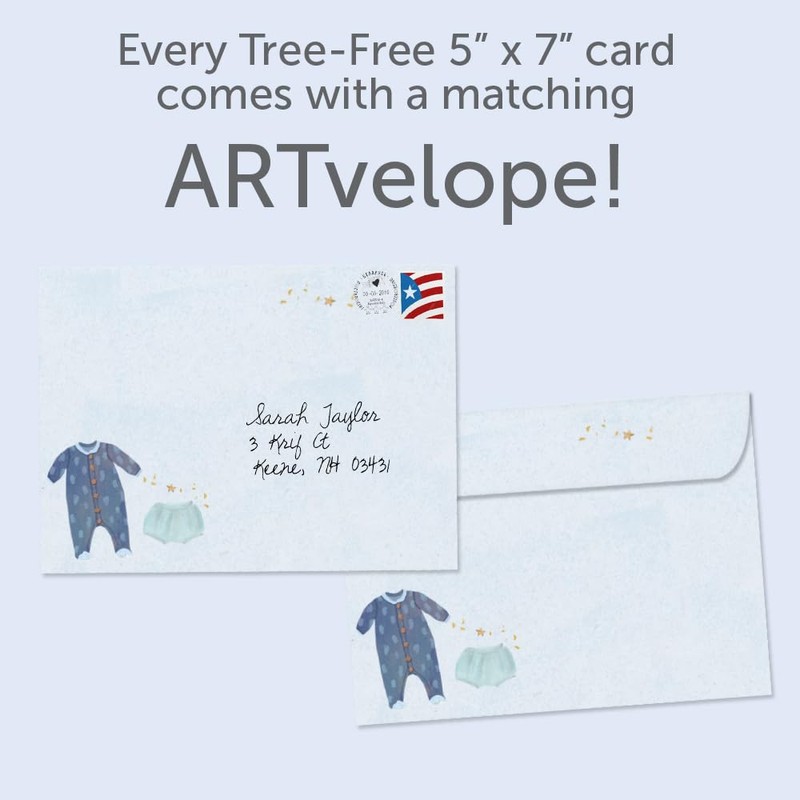 Tree-Free Greetings - New Baby Boy Greeting Card - Artful Designs - 1 Card + Matching Envelopes - Made in USA - 100% Recycled Paper - 5"x7" - Lighthearted, For Parent, New Baby Boy (GO64422)