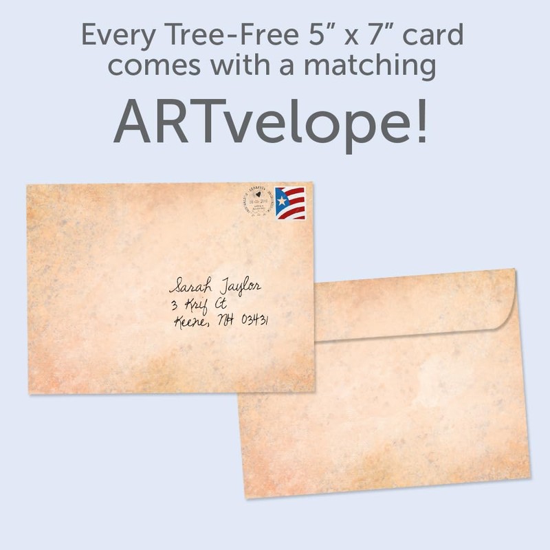 - SUSTAINABLY MADE IN THE USA - Tree-Free's premier, budget-friendly greeting cards and envelopes are made in Keene, NH from 100% post-consumer recycled paper. Extra- thick card stock provides a sturdy and durable high-quality feel. These cards are printed using 20% less waste than conventional printing, with solar power and using VOC-free inks.