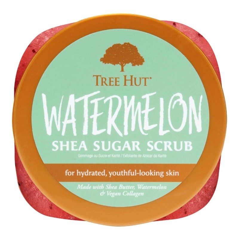 Experience an intense exfoliation and reveal soft, glowing skin with the skin-quenching scent of Watermelon! Made with Sugar, Shea Butter, Watermelon, Vegan Collagen and an array of natural oils including Evening Primrose, Avocado, Macadamia, Sweet Almond, Safflower and Orange Oils. Deeply nourish and balance skin’s hydration to help restore skin's natural glow. Exfoliating body scrub removes dull, dry skin to reveal glowing, soft, smooth skin. Tree Hut’s Shea Sugar Scrubs are effective exfoliating body scrubs that remove dull, dry skin to reveal glowing, soft, smooth skin. Watermelon is known as a natural humectant that helps prevent moisture loss and it provides gentle, yet effective, exfoliation. Vegan Collagen is known to help give the appearance of smooth and youthful-looking skin. Sugar is Tree Hut’s natural exfoliant that effectively polishes away dead skin while helping to boost circulation to the skin surface. Natural Shea Butter is known to deeply moisturize, nourish and soften dry, skin while helping to promote elasticity. Natural oils condition skin to help prevent dryness and balance hydration for a refined, healthy glow. Tree Hut Shea Sugar Scrubs feature a 6-oil blend of: Avocado Oil, Macadamia Oil, Sweet Orange Oil, Sweet Almond Oil, Evening Primrose Oil, Safflower Oil. Tree Hut Watermelon Shea Sugar Scrub is paraben free, vegan, sulfate free, alcohol free, contains no formaldehyde donors, has a no-slip formula and long-lasting fragrance.