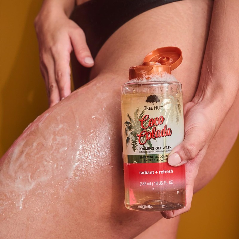 Our Tree Hut Coco Colada Foaming Wash contains Coconut Oil which is known to help moisturize and soften skin and Pineapple which features skin-loving Vitamin C, known to help brighten and even skin tone appearance. It also has natural Shea butter which is known to deeply moisturize, nourish, and soften dry skin while helping to promote elasticity.