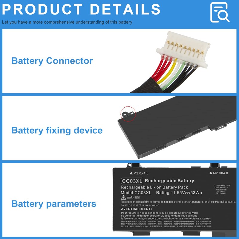 - 【Compatible Part Number】CC03XL HSTNN-DB9Q L77608-2C1 HSTNN-IB9F L77608-1C1 HSTNN-LB8Q L77608-421 L78555-005