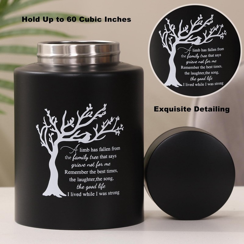 Tree of Life Medium Urns for Human Ashes, Medium Sized Urns for Ashes Adult Male Female, Angel Wings Small Keepsake Urns for Human Ashes (Black Tree of Life)
