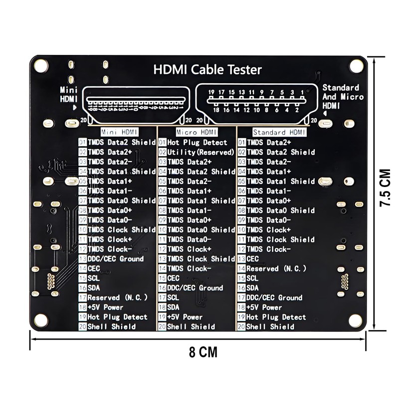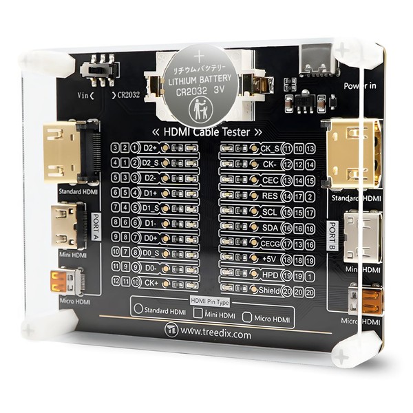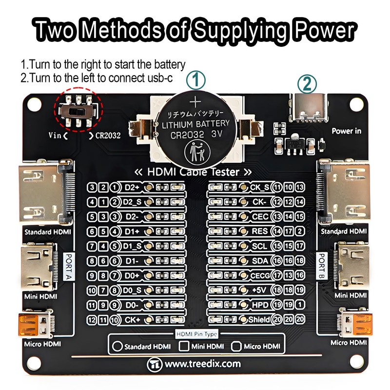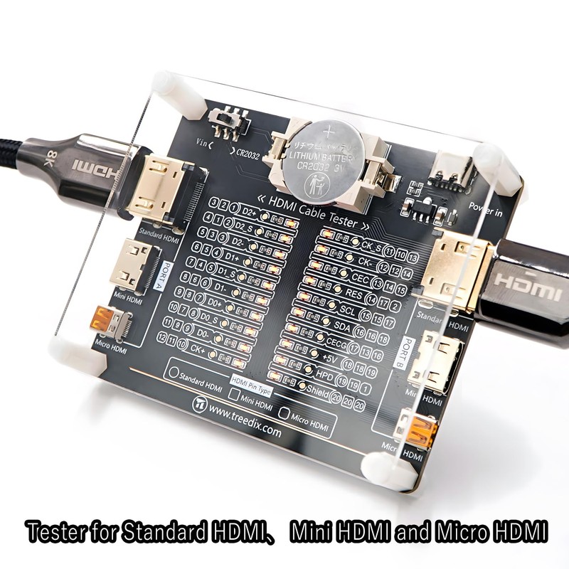 • This cable tester is specially designed by Treedix to easily test the continuity of HDMI cables, including standard HDMI cables, micro HDMI cables and mini HDMI cables.