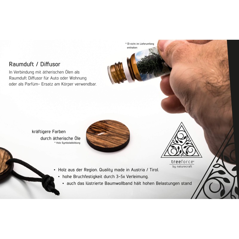 Thanks to the absorbency of wood in combination with essential oils, the wood has a wonderful added use and can be used in the car,