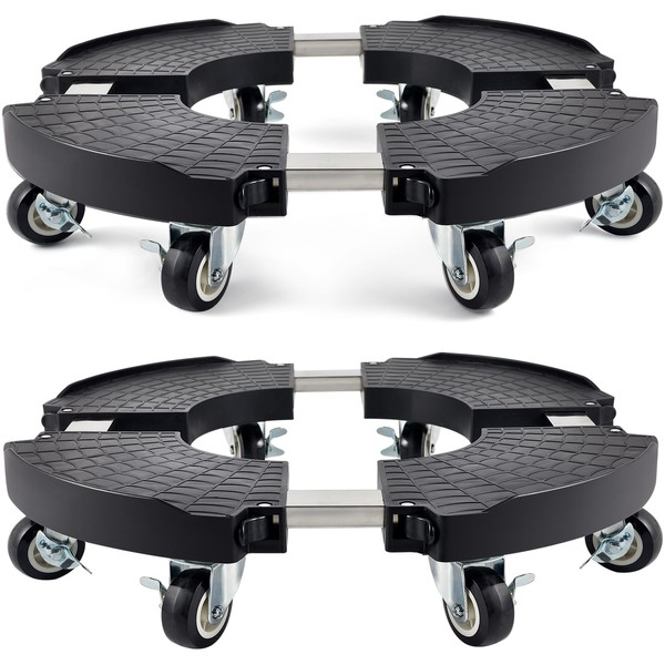 TreeGun 2 Pack Plant Caddy with Wheels Heavy Duty with 8 Lockable Casters, Rolling Plant Stand Adjustable for 8inch-22inch Outdoor Indoor Large Plant, Plant Stand with Wheels 500lbs Capacity