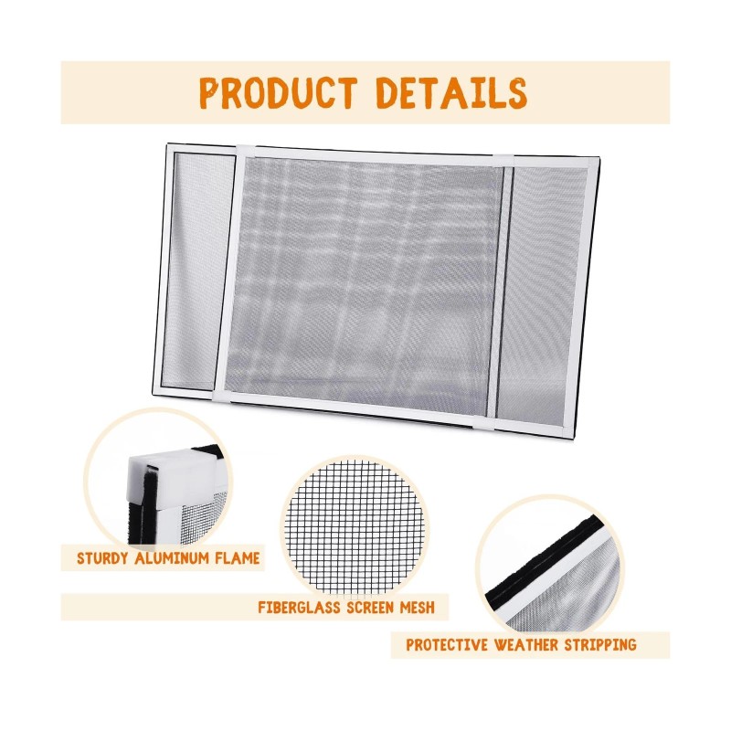 - Adjustable Size: our large pet proof window screen measures 20" x 28" horizontally and can be extended to 54" wide; made of aluminum and fiberglass screen, making them suitable for a variety of window types
