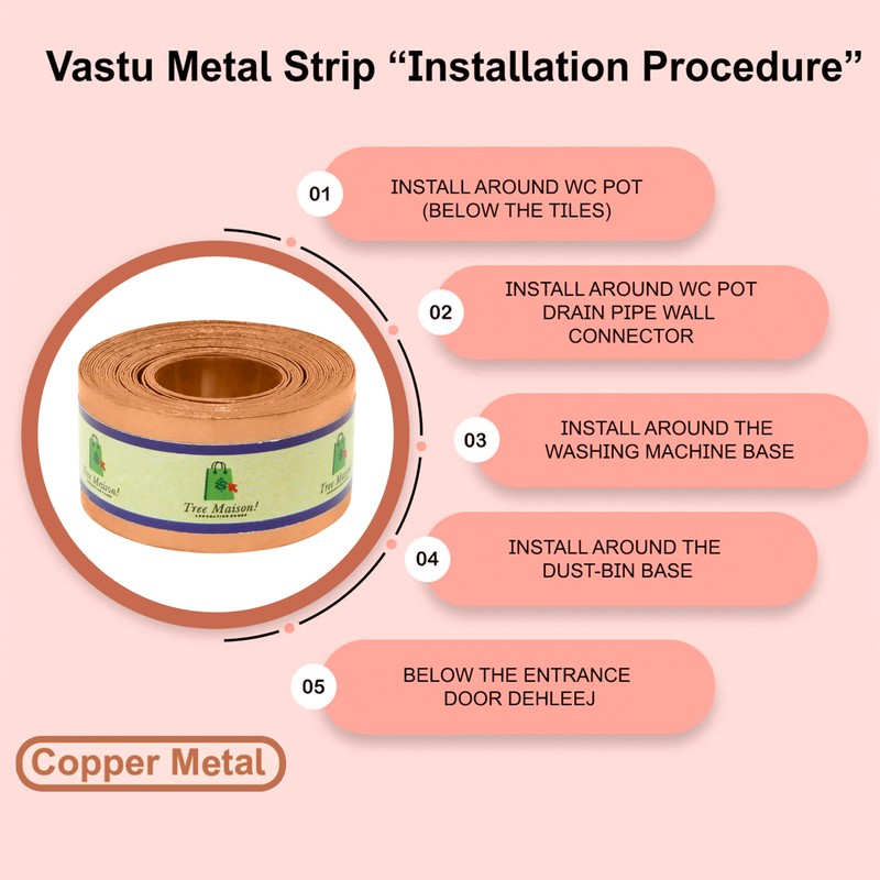 • This Maha vastu strip technique involves pasting a metal strip into the floor surrounding the toilet seat in order to block any anti-activity, which is typically associated with toilets.