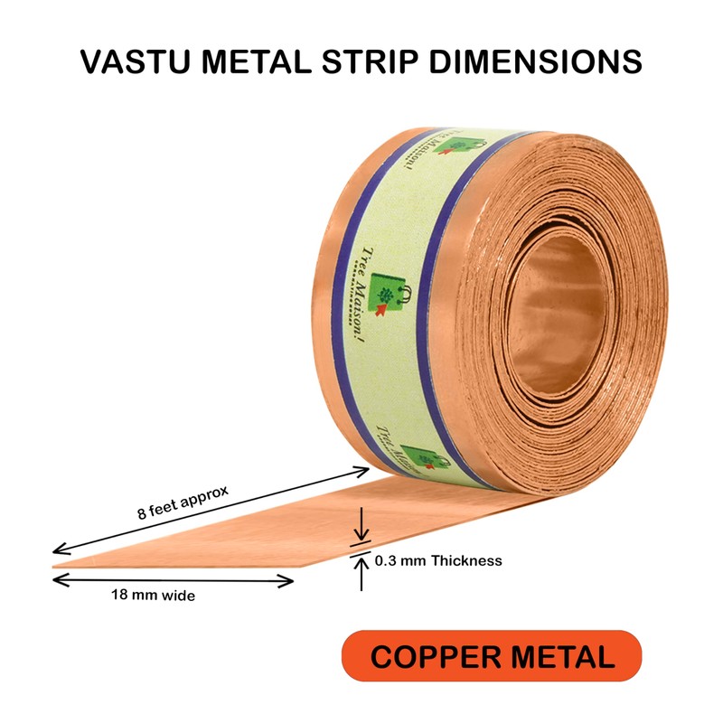 TREEMAISON Copper Strip | 8feet | Gauge- 0.2mm | Width- 0.75inch | vastu Remedy | Toilet Correction | Strip Remedy | Zone Balancing | Main Door Entrance | Mahavastu Remedy | Pair of 4