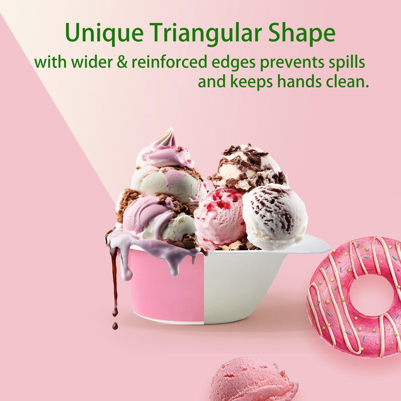 TreeMVI-Paper Bowls Heavy Duty 14OZ Triangle Eco-Friendly Disposable Bowl Bulk Ice Cream Cups for Soup,Hot Food,Salad,Dessert (100PCS)
