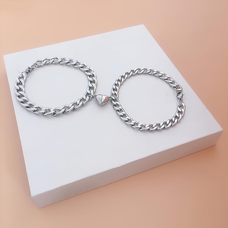 TREENEST 2Pcs Pulseras Magnéticas para Parejas,Cadena Cubana de Corazón a Juego,Joyería de Moda,Regalos para Ella y Él 50110