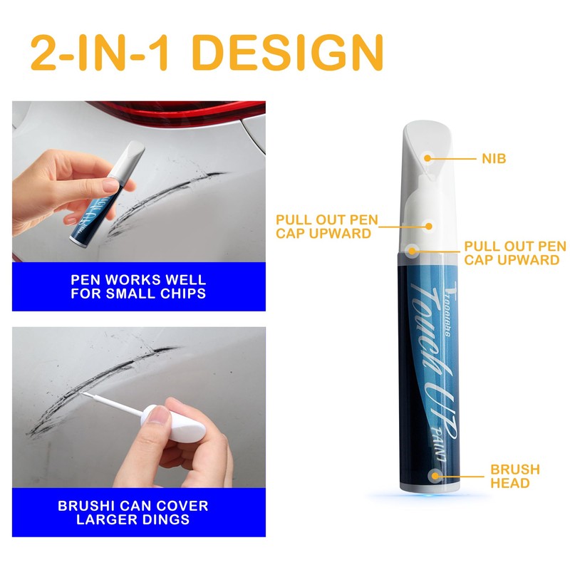 - Ingenious 2 in 1 touch-up pen design: This touch-up pen utilizes the precision of a pen, allowing you to easily apply touch-up paint to small fragments, scratches, and scratches on your car. Each bottle of car paint comes with a pen and a brush to ensure easy use.The extra 1 mm fine brush allows you to touch your vehicle easily and accurately.This is an ideal solution for rapid and effective maintenance.