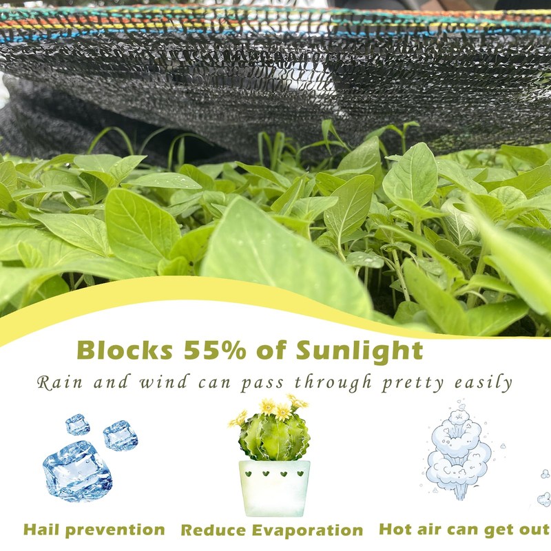 - Protects Plants Effectively: Shade cloth doesn't decrease the amount of sunlight your plants receive throughout the day. It's more than just relocating your plants to a shaded spot. Instead, shade cloth softens the intensity of UV rays, allowing your plants to benefit from sunlight without enduring its full force. By blocking up to 55% of sunlight, our shade cloth provides crucial UV protection, helping to regulate temperature, enhance airflow, and reduce the need for frequent watering