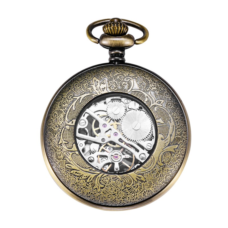 TREEWETO Hollow Silver Flower Vine Skeleton Roman Numerals Mechanical Pocket Watch, brown (bronze), Retro