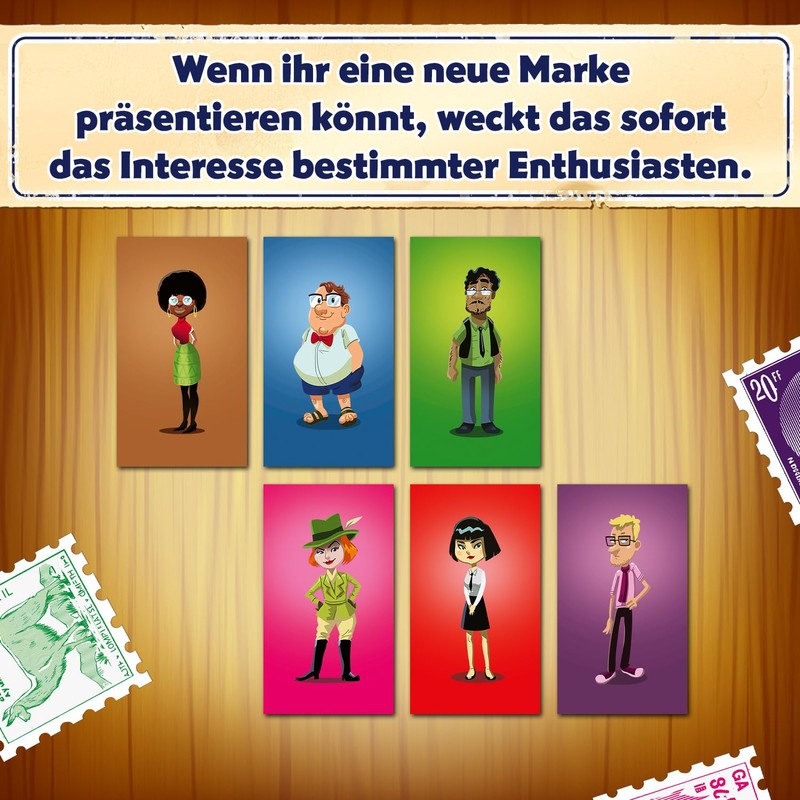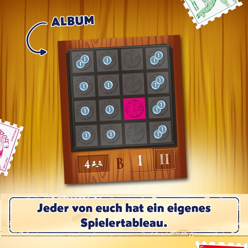 - Contents: 4 player trays (stamp albums), 1 Tableau collector's wallet, 88 collector's plates, 11 special set plates, 24 chocolate boxes, 6 enthusiasts, 4 credit markers, 44 coins, 1 game instructions (English language not guaranteed)