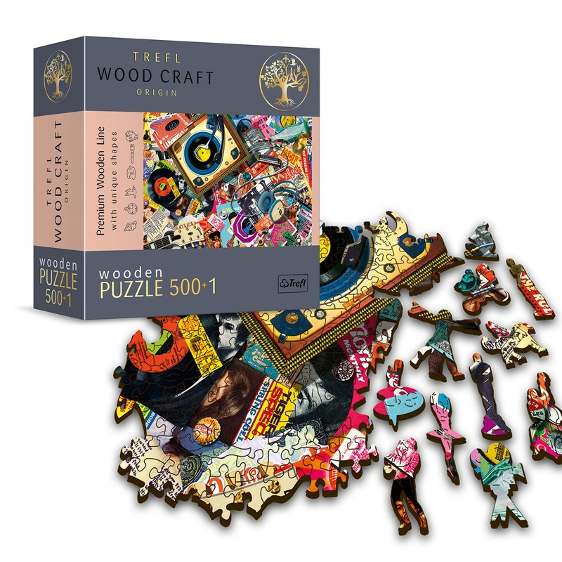 Trefl - Wooden Puzzle: In the World of Music - 500+1 Pieces, Wood Craft, Irregular Shapes, 50 Figures, Modern Premium Puzzle Game, DIY, for Adults and Children from 12 Years