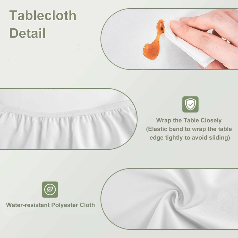 - MATERIAL & SIZE: Washable polyester table cloth. Fitted tablecloth with elastic edges. Tablecloths come in 10 sizes to meet your daily decoration needs. The color is vibrant and will not fade