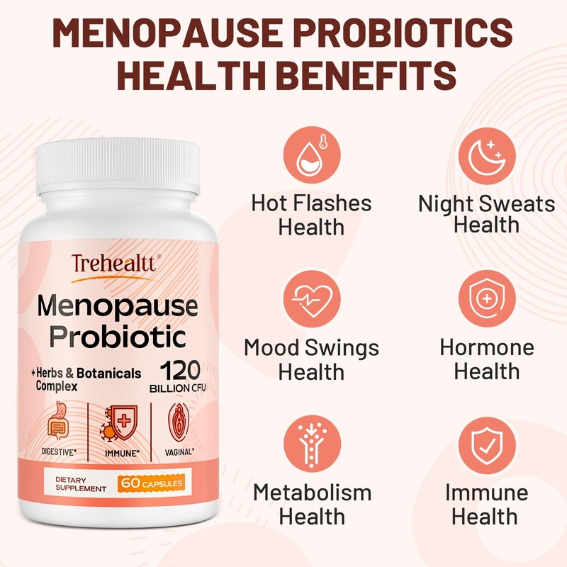 - Menopause Supplement For Women: There's no way around the fact that everyone's body will change over time. Our menopause Probiotics may help keep you comfortable as you enter the different stages of your life. Our menopause probiotics for women are expertly formulated to soothe digestive and gut health plus multi-symptom menopause relief for women, cool hot flashes, elevate your mood and start feeling like yourself again