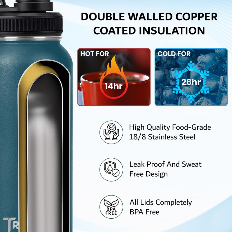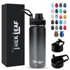 Trek Leaf Travel Water Bottle with 3 Lids (Spout, Straw, Flip) Leak Proof, Quality, Vacuum Insulated, Stainless Steel (Charcoal Fog, 18 oz)