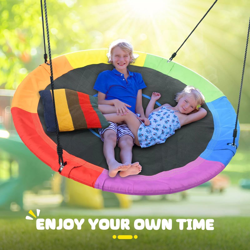 • Upgraded cricle swing seat: Made of high quality material, the large round swing seat is wear-resistant,UV-resistant, lasts for many seasons of play