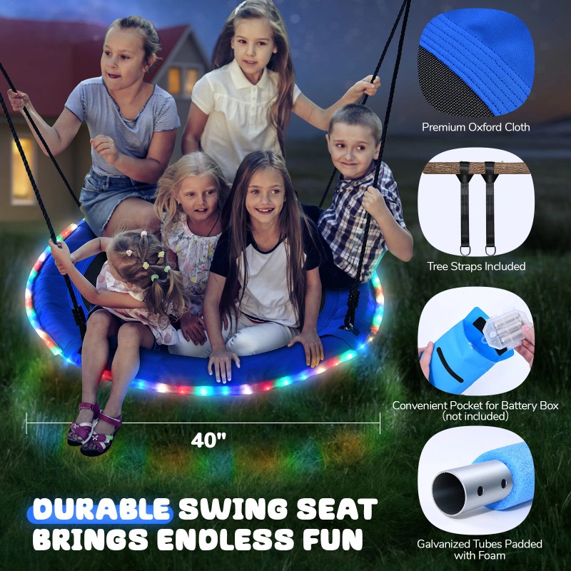 Trekassy swing comes with water-resistant LED rope light, making the swing more dazzling and attractive to kids of all ages!
