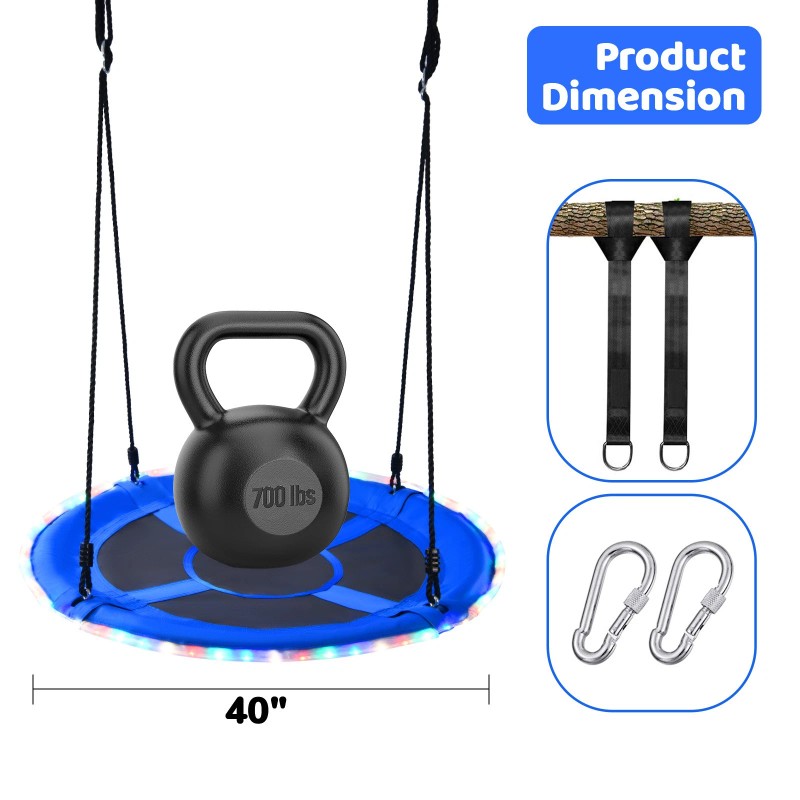 Trekassy LED 40" Round Swing 700 Lbs Spinner Swing Kids Adults for Tree Swing Backyard