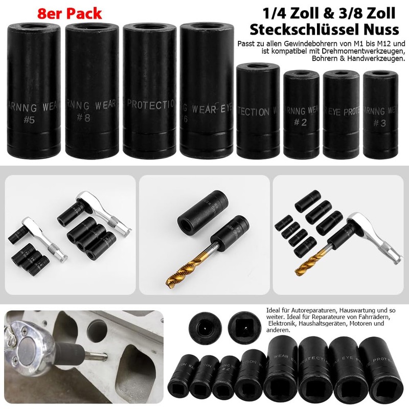 - Socket spanner insert with multiple models - fits taps from M1 to M12 and is compatible with torque tools, reversible ratchet and socket wrenches.