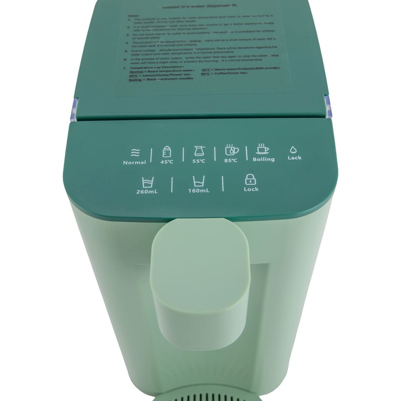 This small green instant hot water dispenser is very convenient and suitable for home or office use. It can heat water quickly, so you can drink hot water at any time and improve your quality of life. Whether it is making tea, coffee, or hot milk, you can easily get satisfactory results from this machine, providing comfort and convenience.