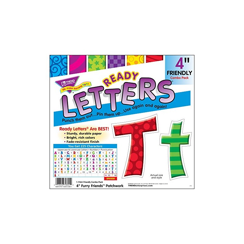 Trend Furry Friends Patchwork Friendly 4-Inch Ready Letters, Multi-Patterned Designs (T79801)
