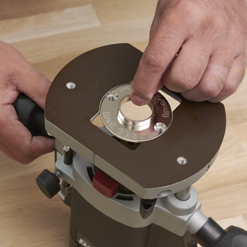 Trend guide bushes can be attached to the base of the Router. They are designed to follow the contours of a template.Trend guide bushes can be attached to the base of the Router. They are designed to follow the contours of a template..GB30 = 30mm, Outside Diameter of Bush. GB30 Guide Bush 30mm Dia E44184