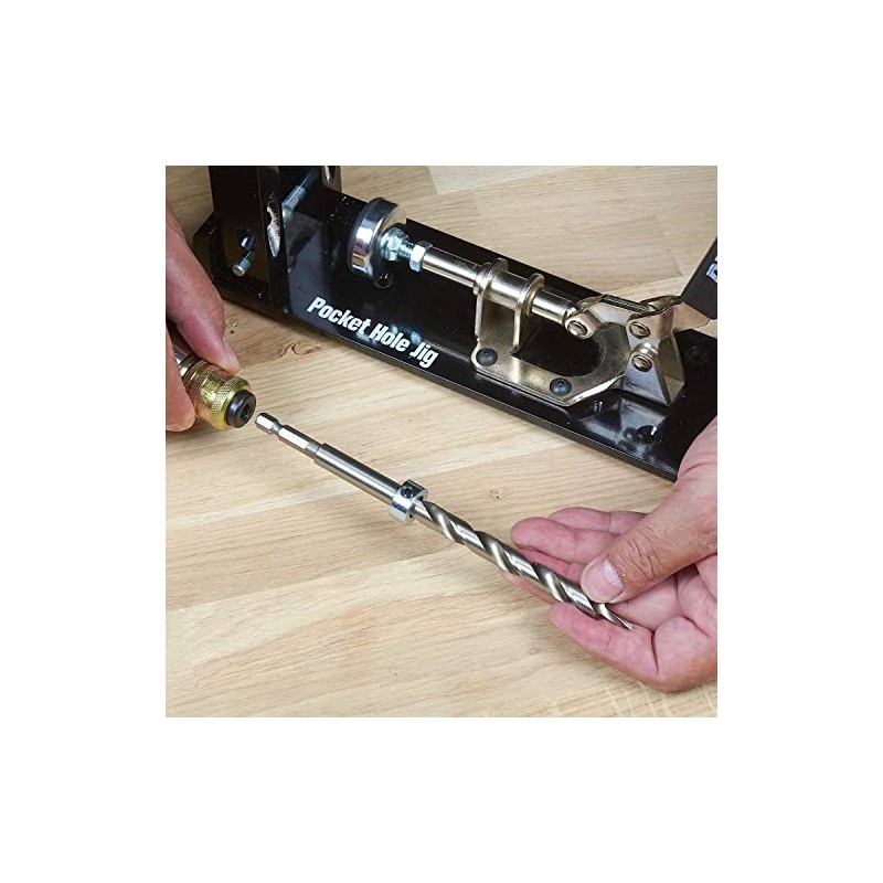 - DEPTH SETTING COLLAR: Get the correct depth using the adjustable depth setting collar. Ensures precise pocket hole depth drilling so you don’t ruin your workpiece.