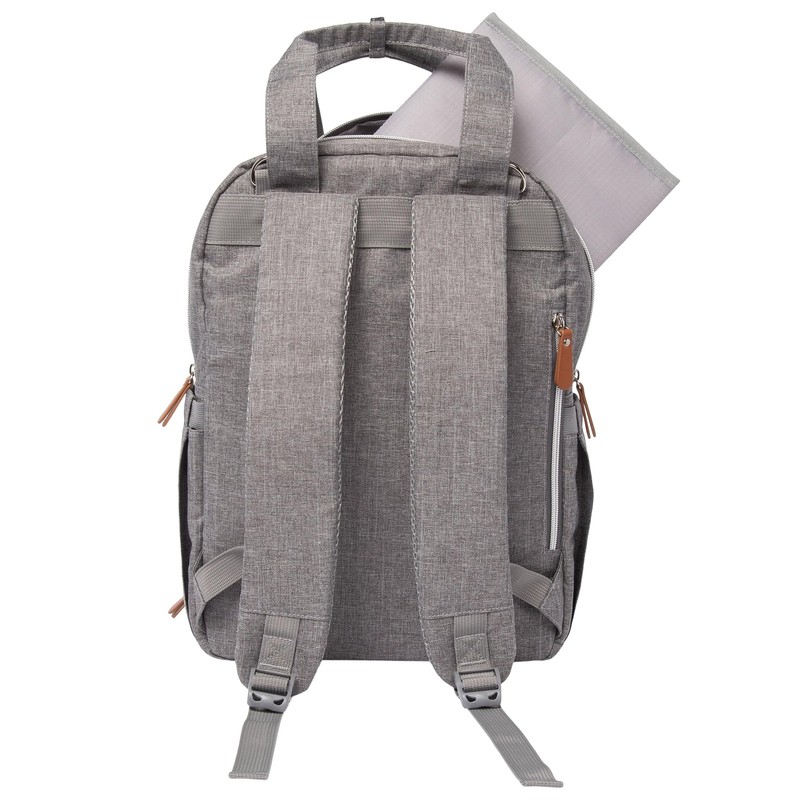 - This diaper bag is essential and features a modern style; Its gender-neutral gray is great for any mom or dad and adjusts to any shoulder length